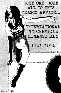 To be honest, I never really approved of Amy. I wondered why the hell she was encouraging her listeners to say “Fuck rehab.” I did, however, totally envy her voice and love the fact her first album was called ‘Frank’. As I curled up on the sofa earlier and watched Isobel and Maxim play Monopoly, feeling vaguely guilty for not doing a My Chem Day post, it occurred to me why there’s a My Chem day.