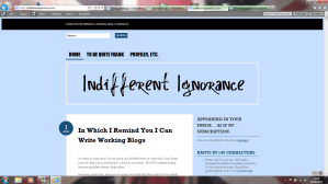 Isobel’s had trouble too, so it isn’t just me. If you’re having viewing issues, please let me know immediately so I can fix this. Or send WordPress a huffy email documenting both this and the Content Eating Monster problem, since I’m not the one who actually configures this website. I just pick the colour scheme, make nice headers, pay for the domain and talk a lot.