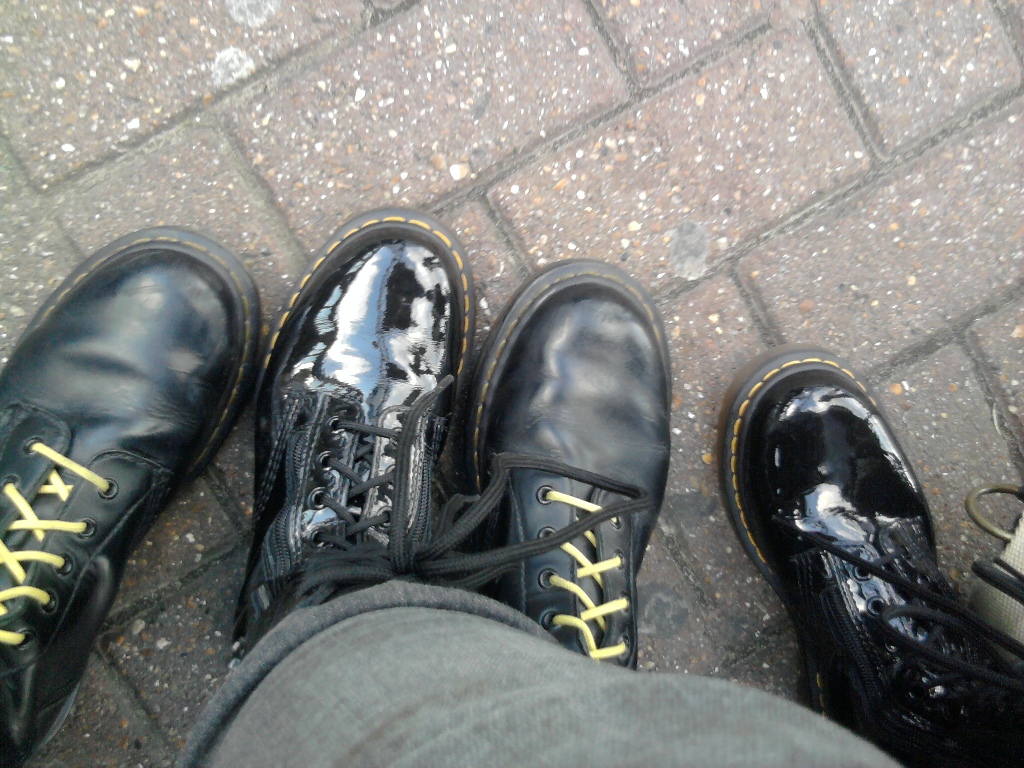 I thought about cropping out our crotches, you know, but then I remembered the title and that we are supposed to be an example of modern society. And we saw about twelve thousand innocence-violating outfits today, so I think I should leave it all in. Gritty realism and all that.