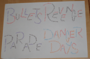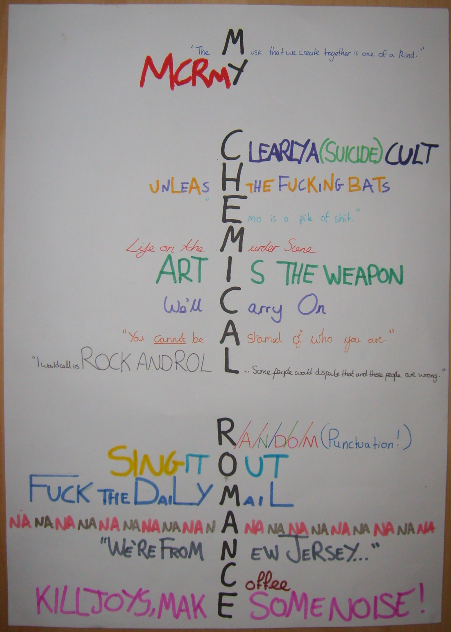 There is a lyric from every original song in there, I think, but one of them is wrong. I did redo it (twice) but then I remembered that age-old saying “Would you destroy something perfect in order to make it beautiful?” and watched television instead.