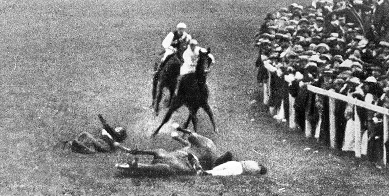 Even with the high-definition, Technicolor excellence that allows us to view Colonel Gaddafi getting executed by Libyans and Syrians execute other Syrians and Simon Cowell’s eerily plastic face perfectly, it’s hard to imagine what that event must have been like. I mean, no one likes seeing the horses fall when they jump those hurdles at the Grand National or whatever, and no one likes seeing people get knocked to the ground unconscious. Wondering what the onlookers might have thought, and wondering what Emily might have thought as she dashed onto the track, makes me uncomfortable.